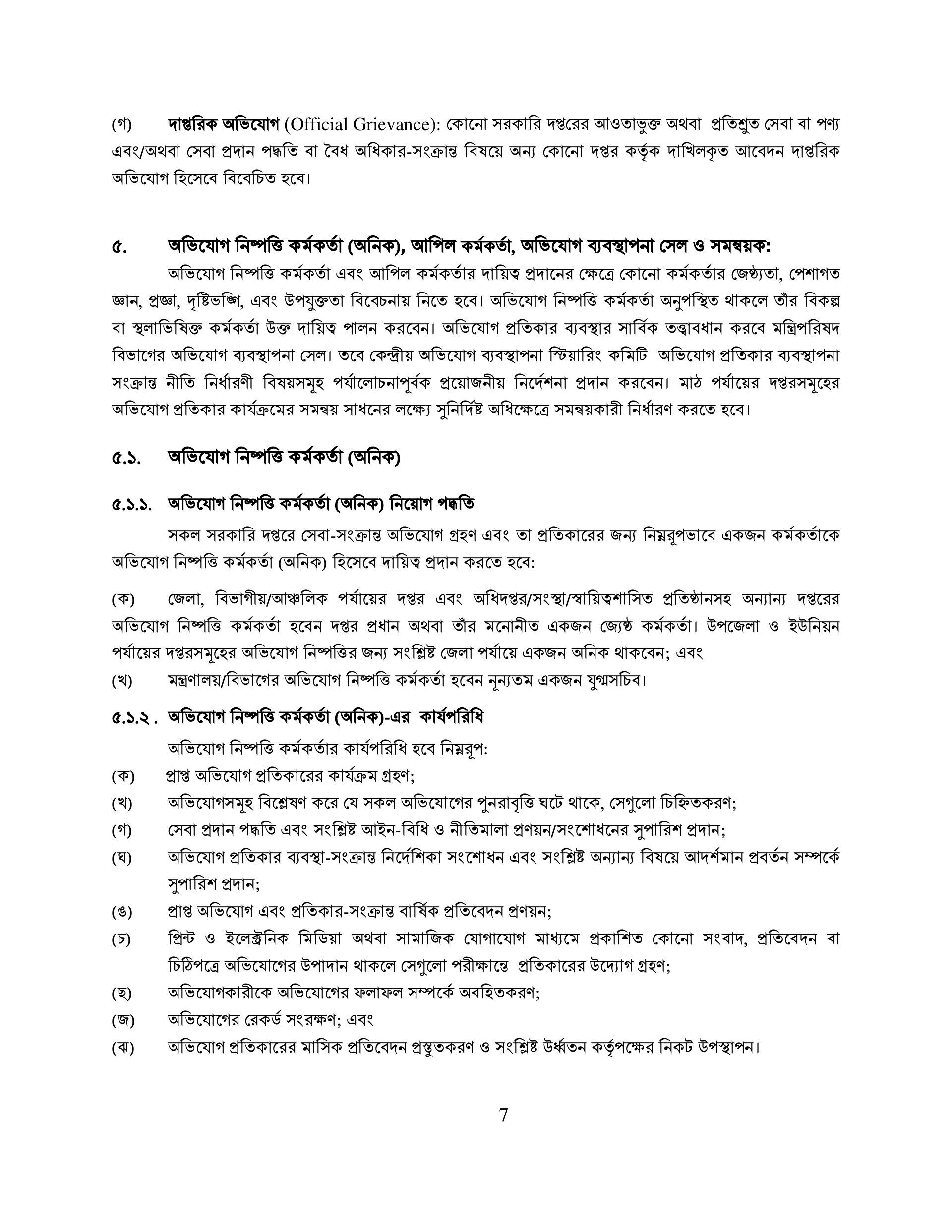 | ১ | দায়িত্বপ্রাপ্ত কর্মকর্তা সমাধান দিতে না পারলে | অভিযোগ নিষ্পত্তি কর্মকর্তা (অনিক) | নাম ও পদবি: | ৬০ দিন |