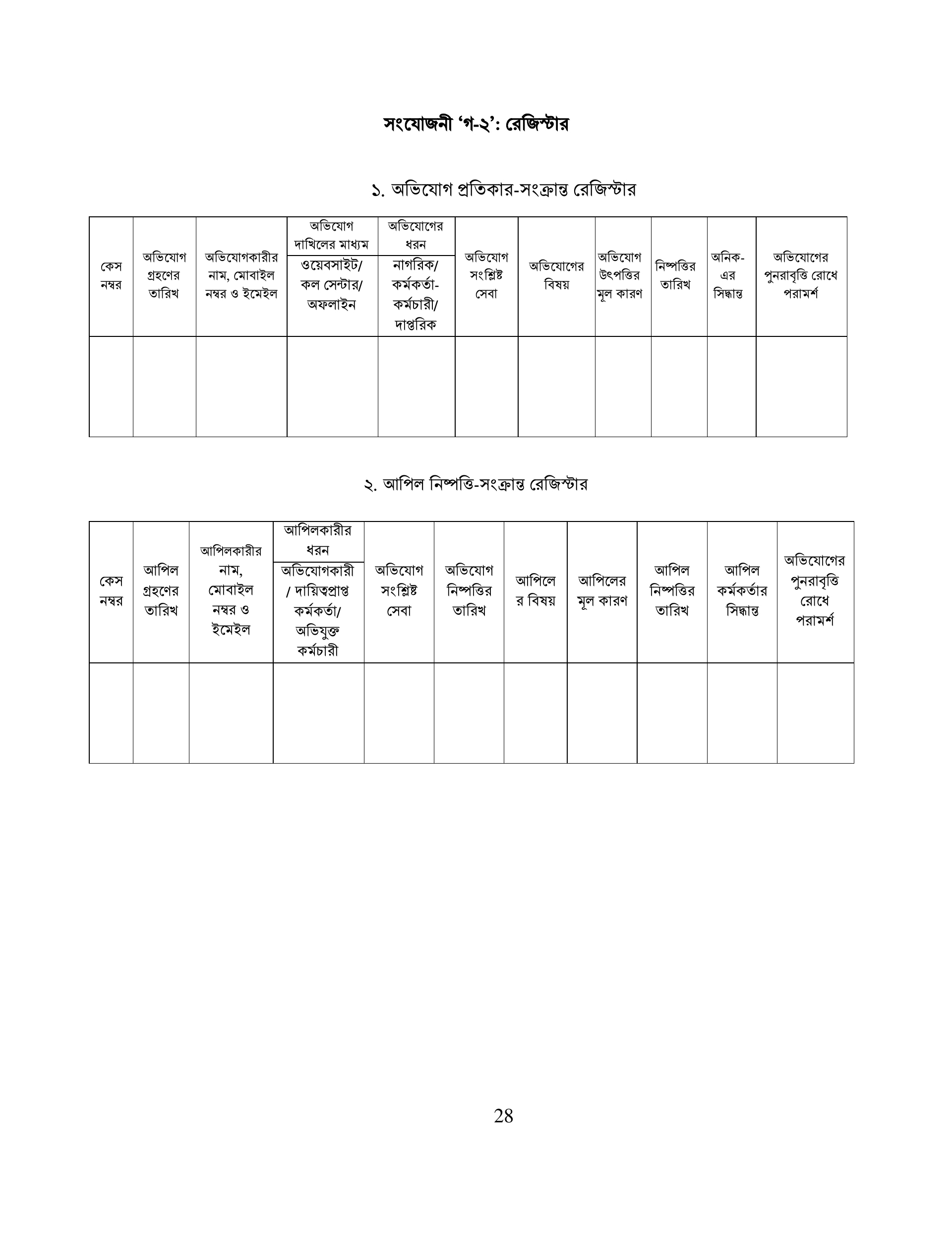 | ২ | অভিযোগ নিষ্পত্তি কর্মকর্তা নির্দিষ্ট সময়ে সমাধান দিতে না পারলে | আপিল কর্মকর্তা | নাম ও পদবি: | ৩০ দিন |